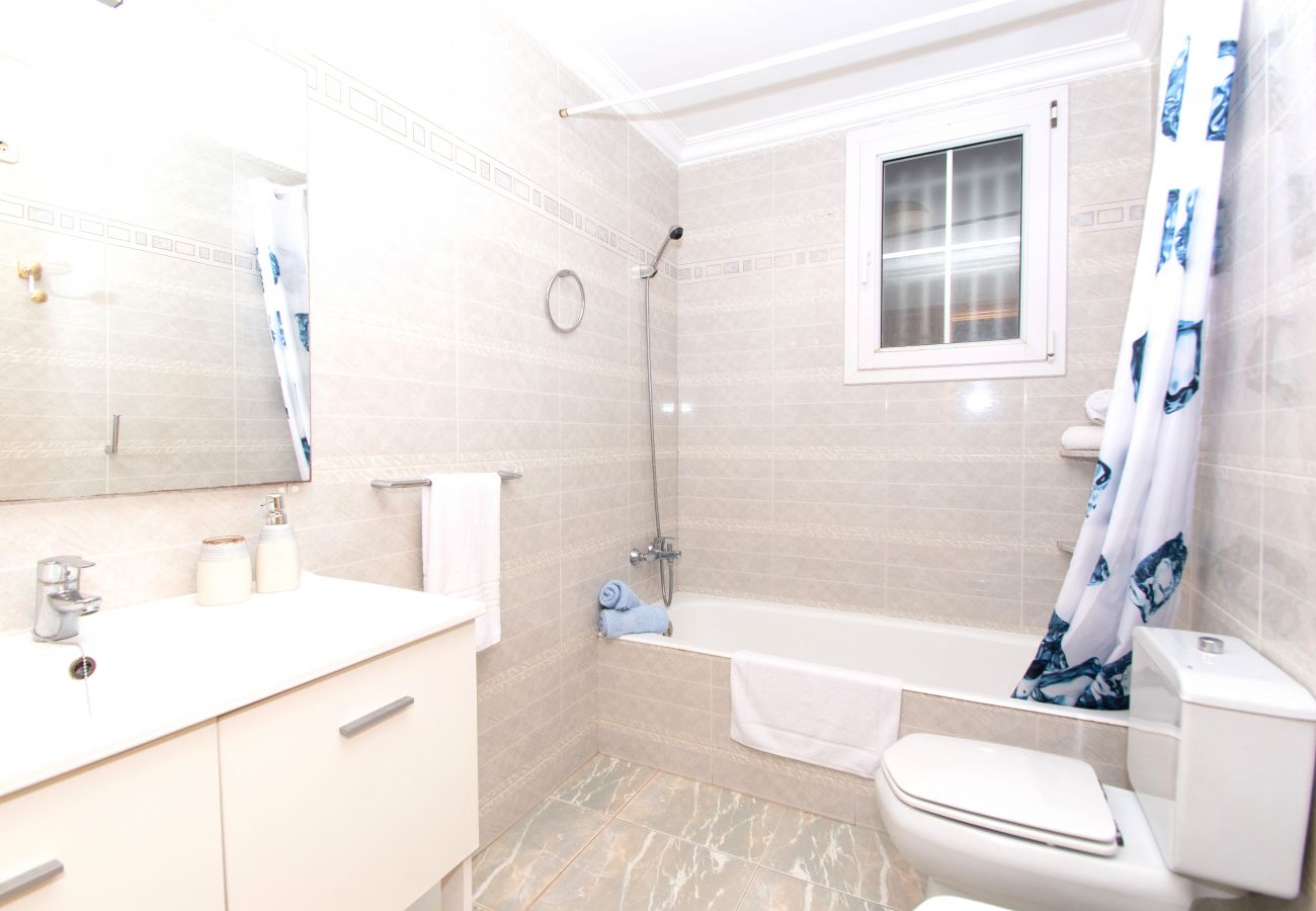 Das Ferienhaus befindet sich auf zwei Etagen verteilt. In der ersten Etage befindet sich das Hauptschlafzimmer mit Doppelbett ausgestattet mit Klimaanlage und einem geräumigen Kleiderschrank. Auf der gleichen Etage gibt es zwei weiteres Doppelzimmers ausgestattet mit Klimaanlage, ein besteht aus zwei Einzelbetten und das andere Doppelzimmer hat ein Doppelbett und Zugang zur die Terrasse. Alle Schlafzimmers haben Einbauschränke und teilen sich ein Badezimmer, die eine Badewanne und einen Haartrockner hat.