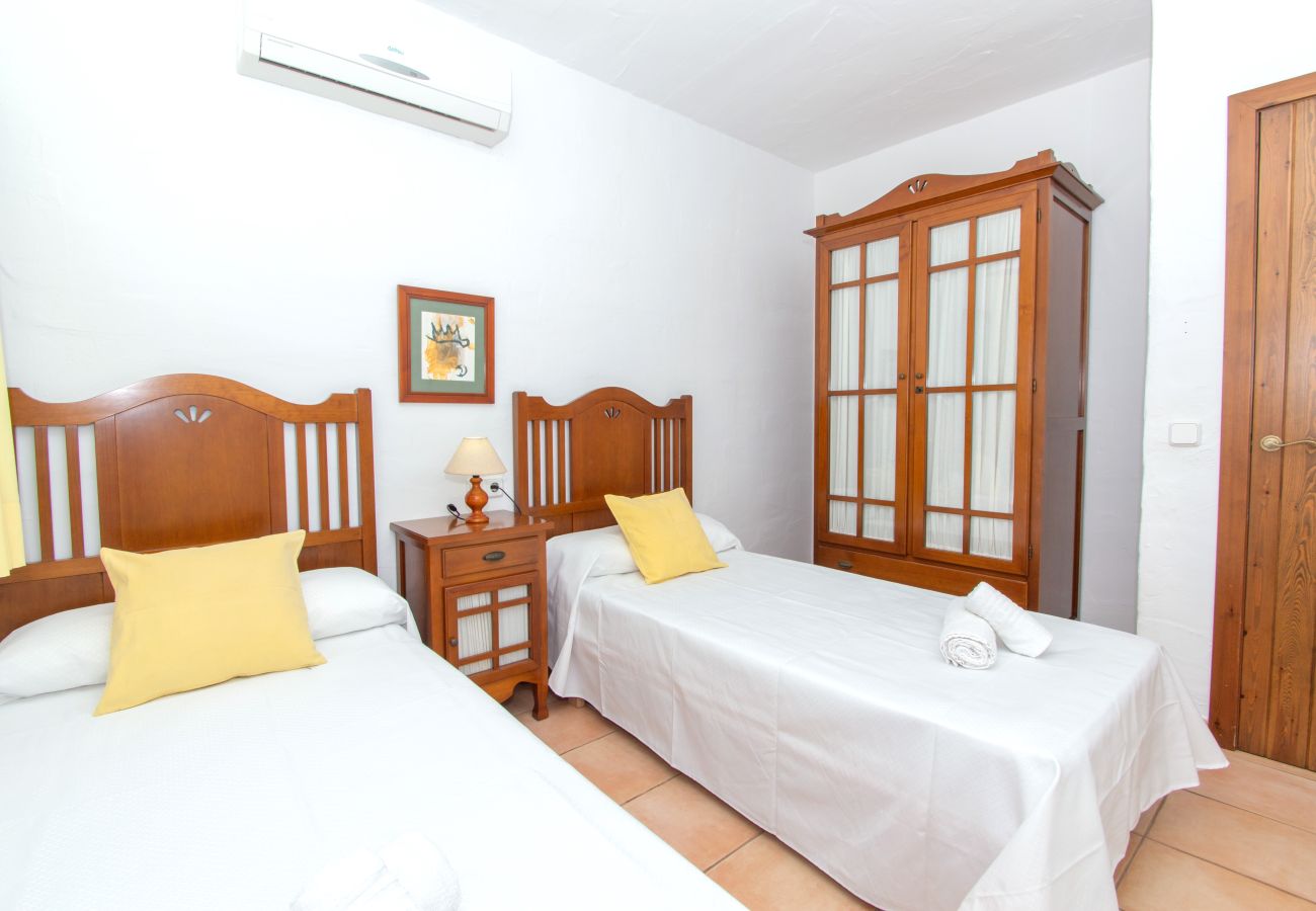 Im anderen Teil der Villa finden wir den Flur, der zu den Zimmern auf der ersten Ebene führt. Das erste Doppelzimmer verfügt über zwei Einzelbetten und ist mit einem guten Kleiderschrank ausgestattet. Das nächste Schlafzimmer ist ebenfalls mit zwei Einzelbetten und einem Kleiderschrank ausgestattet. Als nächstes finden wir das Badezimmer, das komplett mit einer Duschwanne und einem Haartrockner ausgestattet ist. Schließlich das Hauptschlafzimmer, das aus einem Doppelbett, einem großen Kleiderschrank und einem kompletten En-Suite-Badezimmer besteht. Dieses Badezimmer ist mit einer Badewanne ausgestattet. Alle Zimmer sind mit einer Klimaanlage ausgestattet.