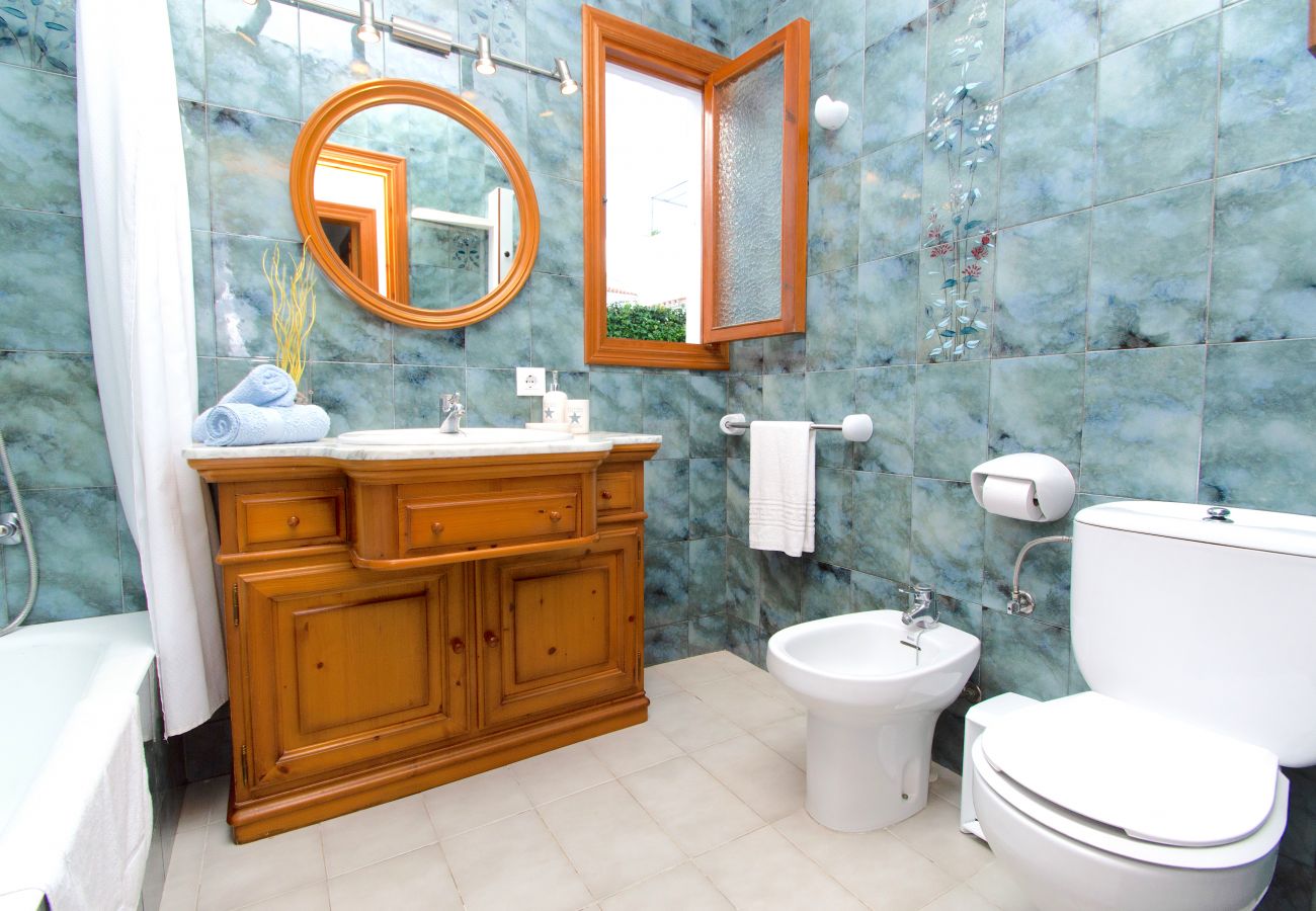 The Villa for rent in Menorca has two bathrooms, one has a bath and the other one has a shower tray. Both bathrooms are totally equipped and also both provided with a hair dryer.