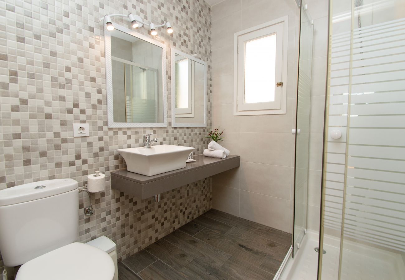 Al piano superiore dell'appartamento in affitto, le camere sono composte da due camere matrimoniali, una con due letti singoli e l'altra con un letto matrimoniale che dispone anche di un ampio balcone privato e offre una spettacolare vista sul mare e su Cala Galdana. Entrambe le camere hanno un armadio a muro. A questo piano si trova anche un bagno di famiglia con vasca da bagno e asciugacapelli.