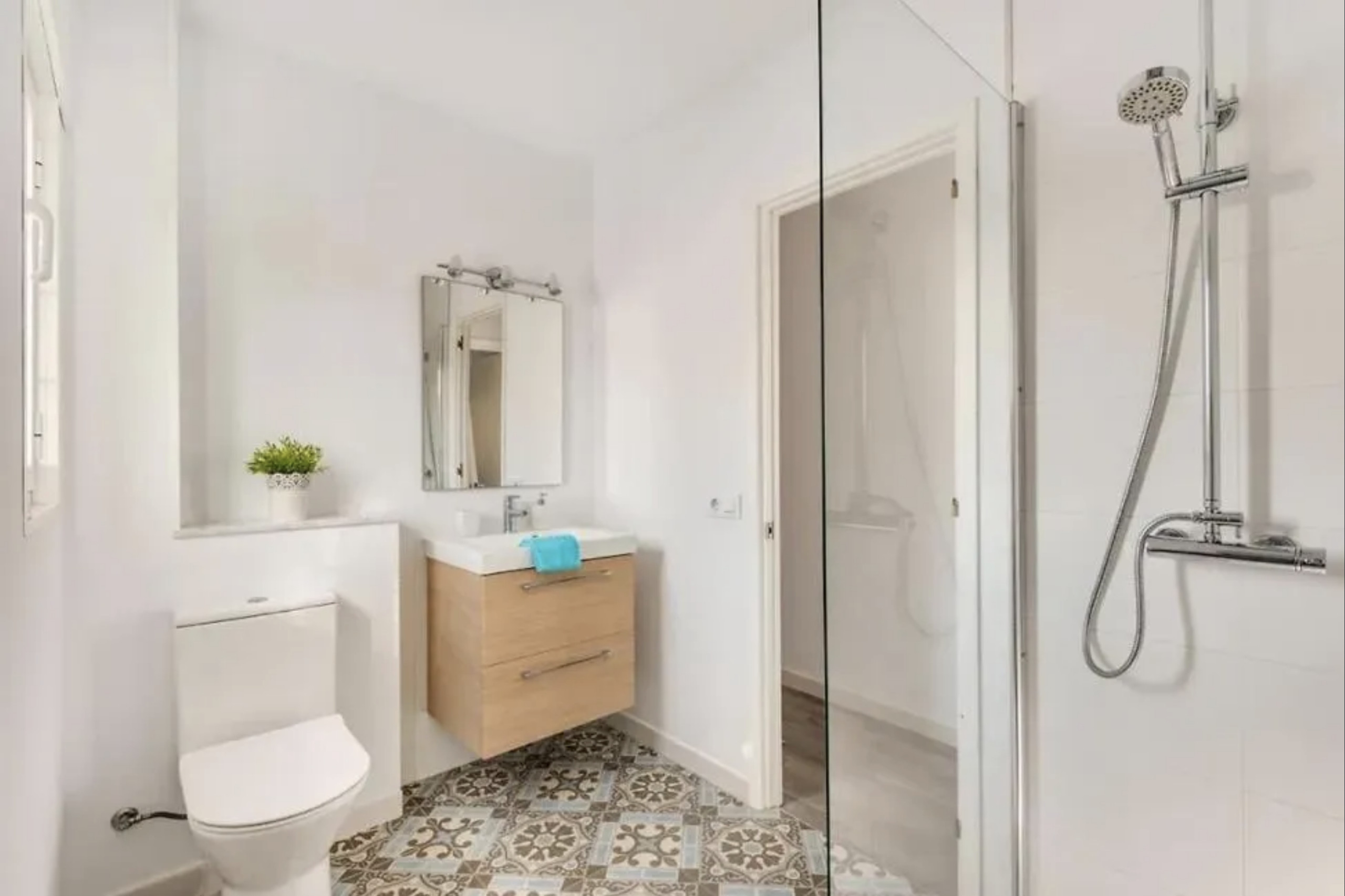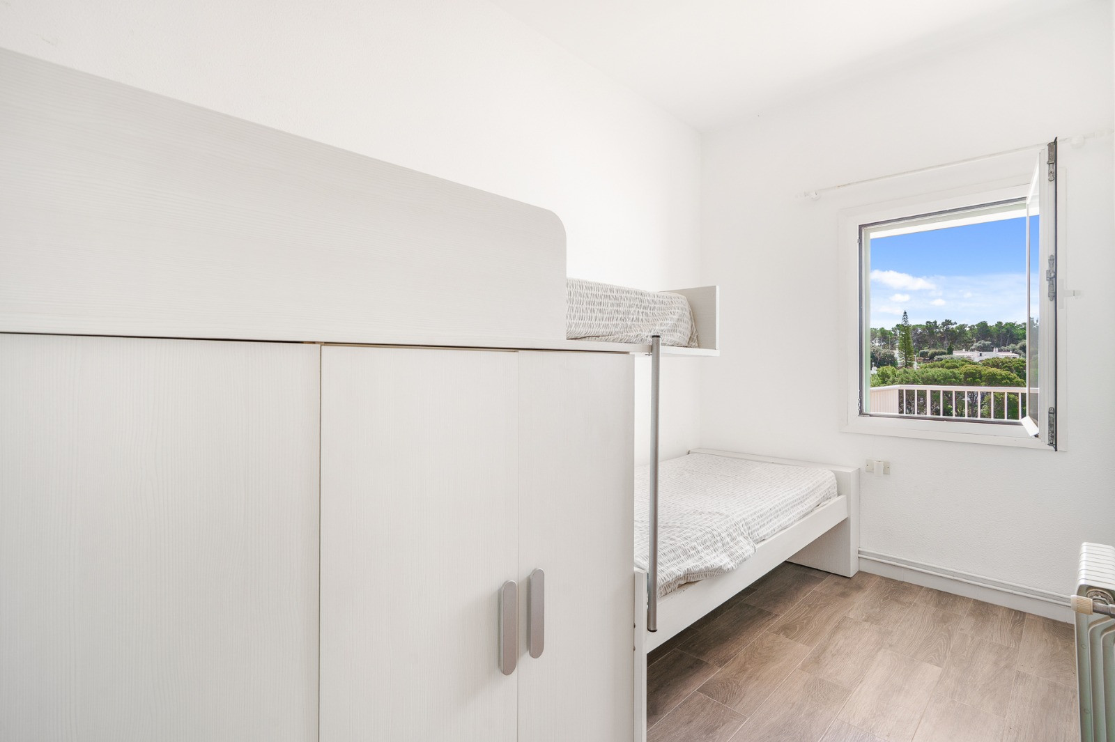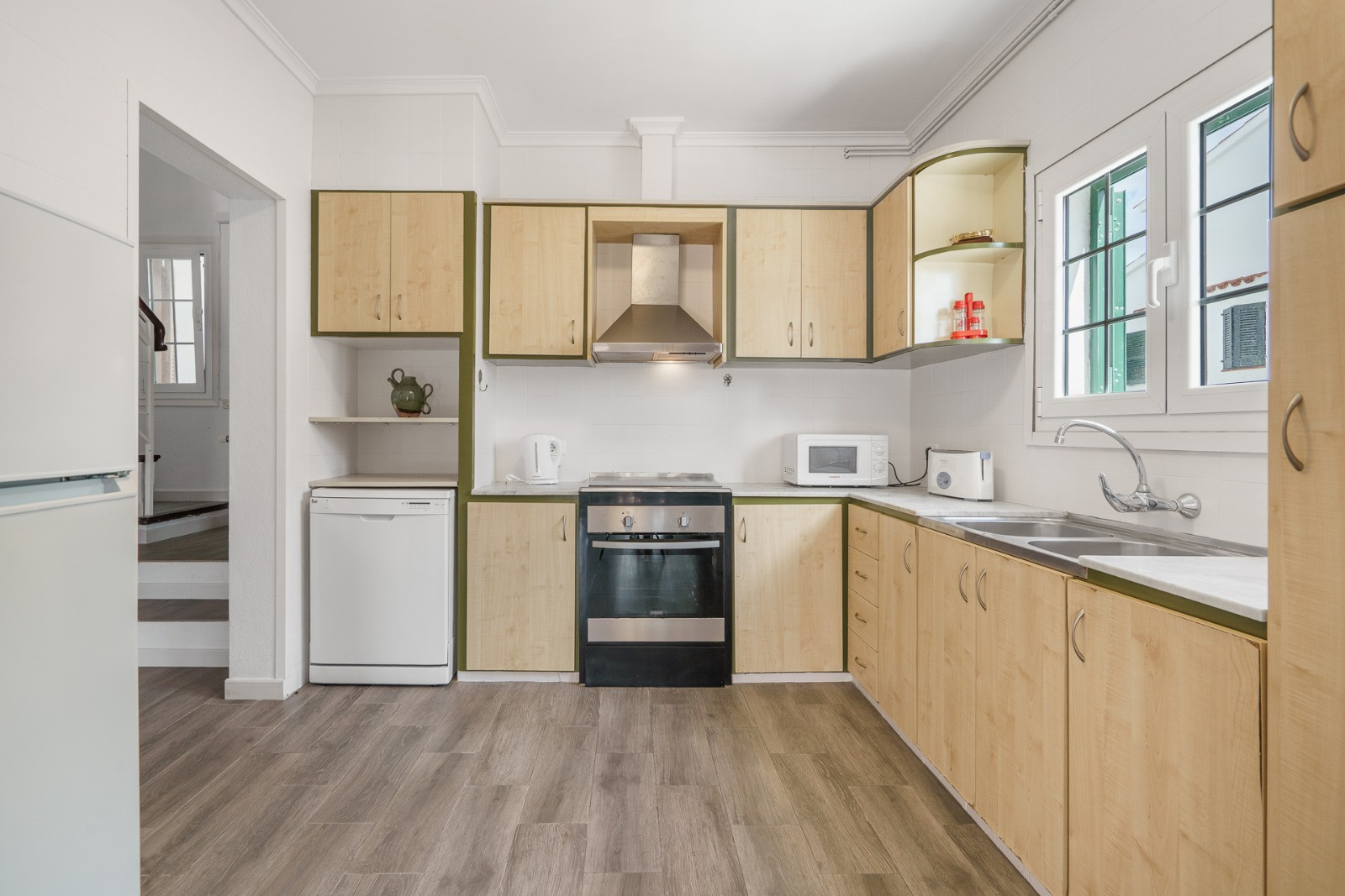 The rooms are distributed in four double bedrooms. On the ground floor, you can find the first bedroom that has a double bed and a wardrobe with enough space to store clothes. On this floor, there is also a spacious bathroom fully equipped with shower and hairdryer. On the upper floor there are the other three rooms and a spacious bathroom that has a bathtub and a hairdryer. The first two bedrooms that are located are equipped with two single beds and a large built-in wardrobe. The third room is the master bedroom. It is en suite and it is equipped with a double bed, a large built-in wardrobe and it enjoys a beautiful private balcony overlooking the beach and Cala Galdana. In addition, the main room has a private bathroom en suite fully equipped and with shower. All bedrooms have air conditioning. This upper floor also has a beautiful terrace overlooking the sea and the beach where you can enjoy beautiful sunsets.