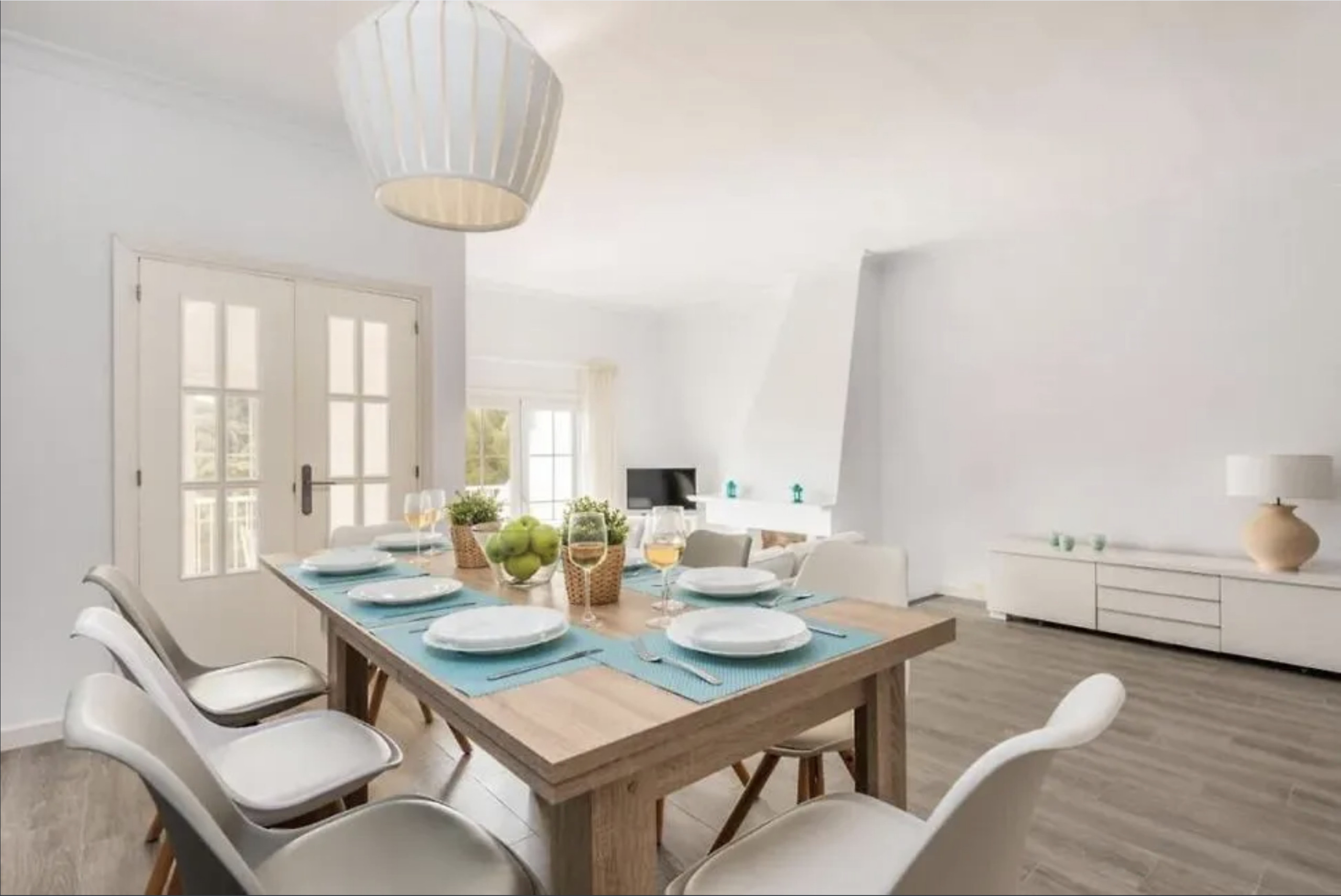This villa rental in Menorca can accommodate eight people. It has a large private pool, air conditioning in all rooms at the Villa, WiFi, and 4 double bedrooms, separate kitchen, spacious living room, three bathrooms, two balconies, terrace, barbecue and private outdoor parking.