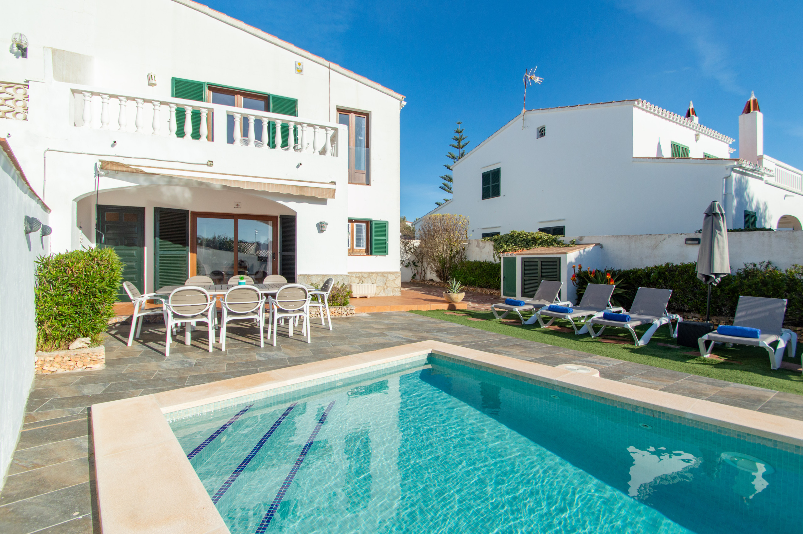 La villa a Cala Galdana ha 4 camera(e) da letto e capacità per 8 persone. Alloggio di 214 m² comodo e totalmente attrezzata. Si trova a 250 m dalla stazione degli autobus, 350 m dal supermercato, 450 m dalla spiaggia di sabbia "Cala Galdana", 2 km dalla spiaggia rocciosa "Cala Mitjana", 7 km della città "Ferreries", 26 km dal campo di Golf "Golf Son Parc", 35 km dall'aeroporto "Aeropuerto de Menorca" e si trova in una zona ideale per famiglie zone e dentro una urbanizzazione.Ha giardino, giardino arredato, casa recintata, terrazza, lavatrice, barbecue, ferro da stiro, cassaforte, accesso internet (wifi), asciugacapelli, balconi, riscaldamento pompa di calore, aria condizionata, piscina privata, parcheggio all'aperto, 1 Televisore, tv satellitare (Lingue: Spagnolo, Inglese, Tedesco, Olandese, Francese).La cucina indipendente, a vetroceramica, è attrezzata con frigorifero, microonde, forno, congelatore, lavastoviglie, stoviglie/posate, utensili da cucina, caffettiera, tostapane, bollitore e spremi agrumi.4 commenti